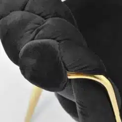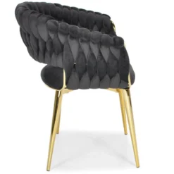 Krzesło wyróżnia się elegancką formą i subtelnymi detalami, które podkreślają jego wyjątkowy design. Gładki, aksamitny welur pięknie odbija światło, dodając wnętrzu klasy i luksusu. Doskonale komponuje się zarówno z aranżacjami nowoczesnymi, jak i klasycznymi, stając się ozdobą każdego pomieszczenia.