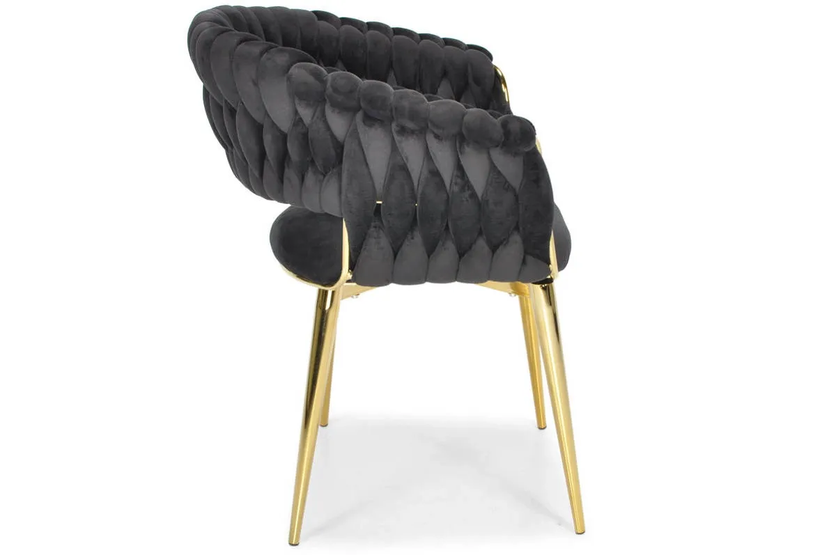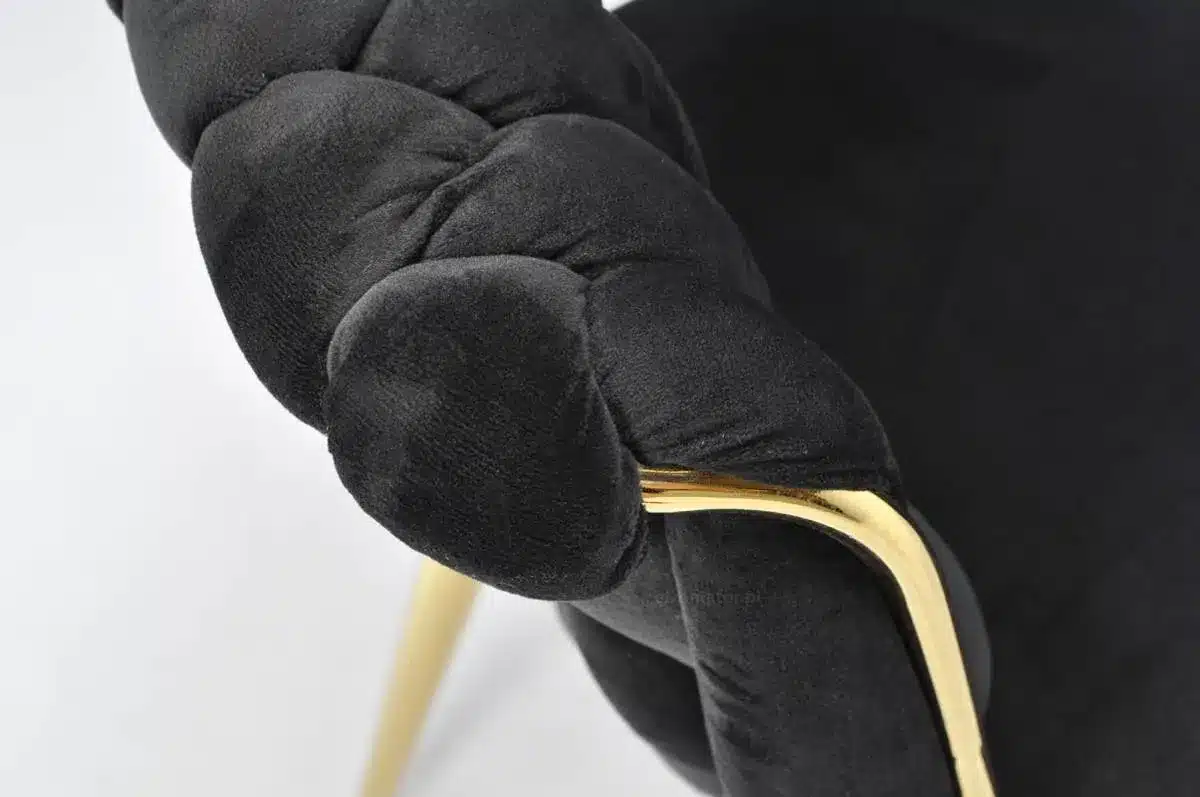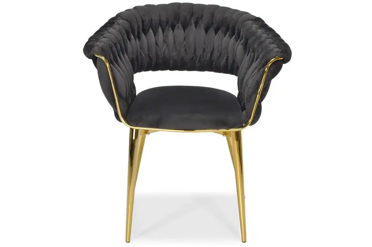 Krzesło wyróżnia się elegancką formą i subtelnymi detalami, które podkreślają jego wyjątkowy design. Gładki, aksamitny welur pięknie odbija światło, dodając wnętrzu klasy i luksusu. Doskonale komponuje się zarówno z aranżacjami nowoczesnymi, jak i klasycznymi, stając się ozdobą każdego pomieszczenia.