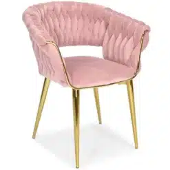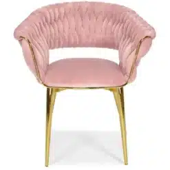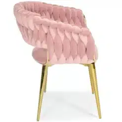 Krzesło wyróżnia się elegancką formą i subtelnymi detalami, które podkreślają jego wyjątkowy design. Gładki, aksamitny welur pięknie odbija światło, dodając wnętrzu klasy i luksusu. Doskonale komponuje się zarówno z aranżacjami nowoczesnymi, jak i klasycznymi, stając się ozdobą każdego pomieszczenia.