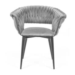 Krzesło wyróżnia się elegancką formą i subtelnymi detalami, które podkreślają jego wyjątkowy design. Gładki, aksamitny welur pięknie odbija światło, dodając wnętrzu klasy i luksusu. Doskonale komponuje się zarówno z aranżacjami nowoczesnymi, jak i klasycznymi, stając się ozdobą każdego pomieszczenia.