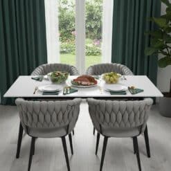 Solidne nogi ze stali zapewniają stabilność i wytrzymałość, a wysokiej jakości tkanina welurowa jest przyjemna w dotyku i łatwa w utrzymaniu czystości. Krzesło zostało zaprojektowane z dbałością o każdy detal, co gwarantuje jego długowieczność i niezawodność.