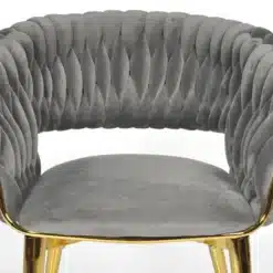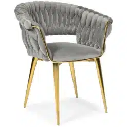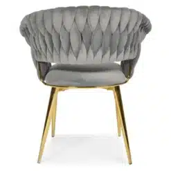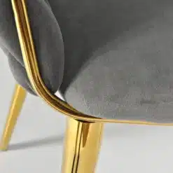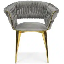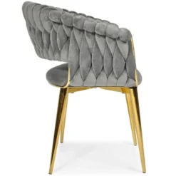 Krzesło wyróżnia się elegancką formą i subtelnymi detalami, które podkreślają jego wyjątkowy design. Gładki, aksamitny welur pięknie odbija światło, dodając wnętrzu klasy i luksusu. Doskonale komponuje się zarówno z aranżacjami nowoczesnymi, jak i klasycznymi, stając się ozdobą każdego pomieszczenia.