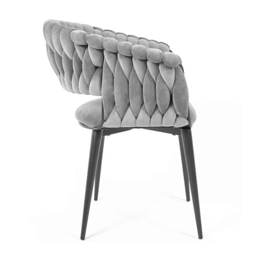 Krzesło wyróżnia się elegancką formą i subtelnymi detalami, które podkreślają jego wyjątkowy design. Gładki, aksamitny welur pięknie odbija światło, dodając wnętrzu klasy i luksusu. Doskonale komponuje się zarówno z aranżacjami nowoczesnymi, jak i klasycznymi, stając się ozdobą każdego pomieszczenia.