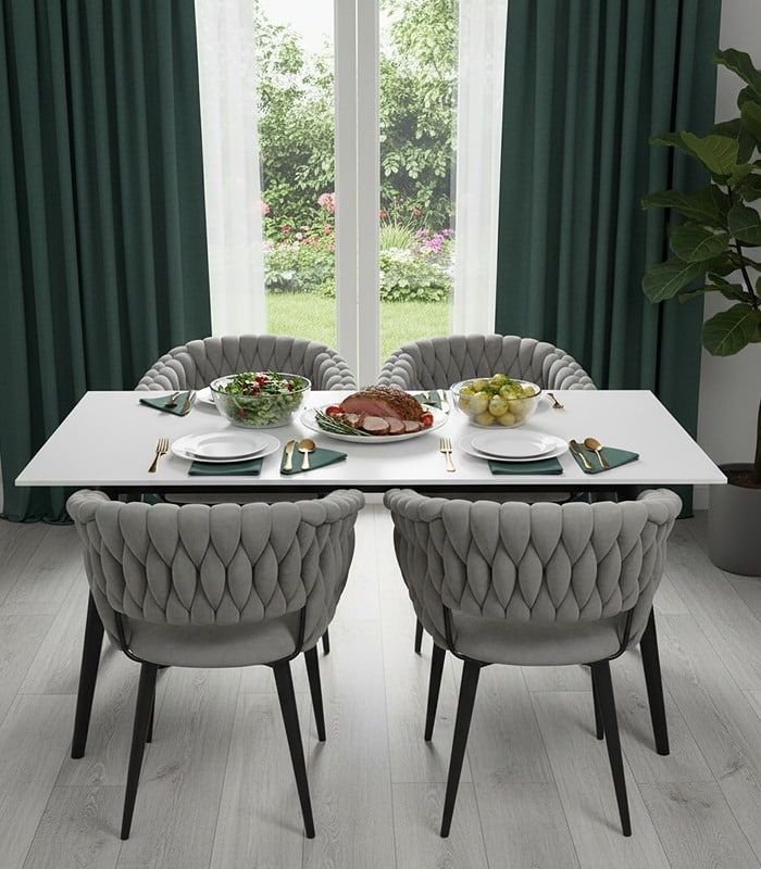 Solidne nogi ze stali zapewniają stabilność i wytrzymałość, a wysokiej jakości tkanina welurowa jest przyjemna w dotyku i łatwa w utrzymaniu czystości. Krzesło zostało zaprojektowane z dbałością o każdy detal, co gwarantuje jego długowieczność i niezawodność.