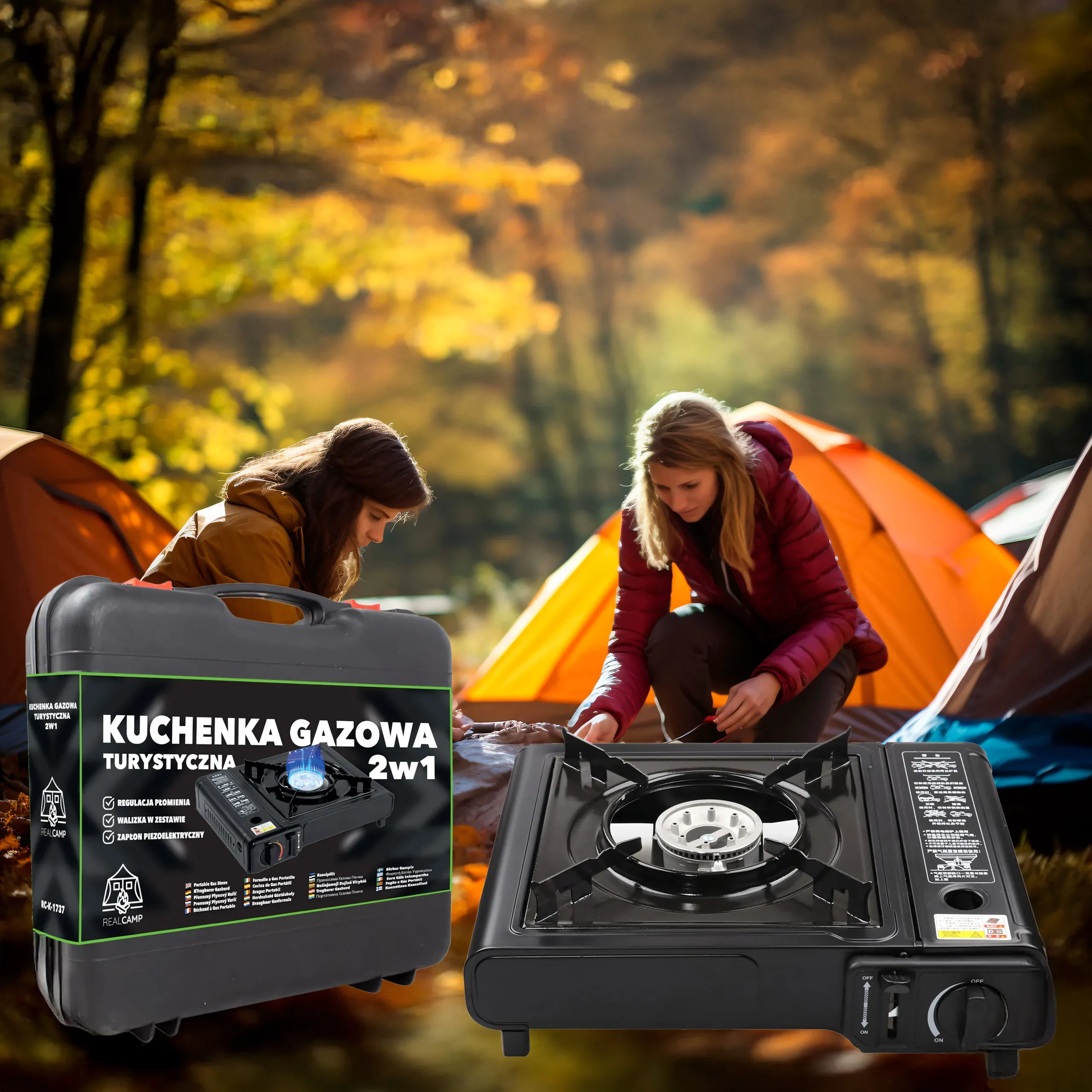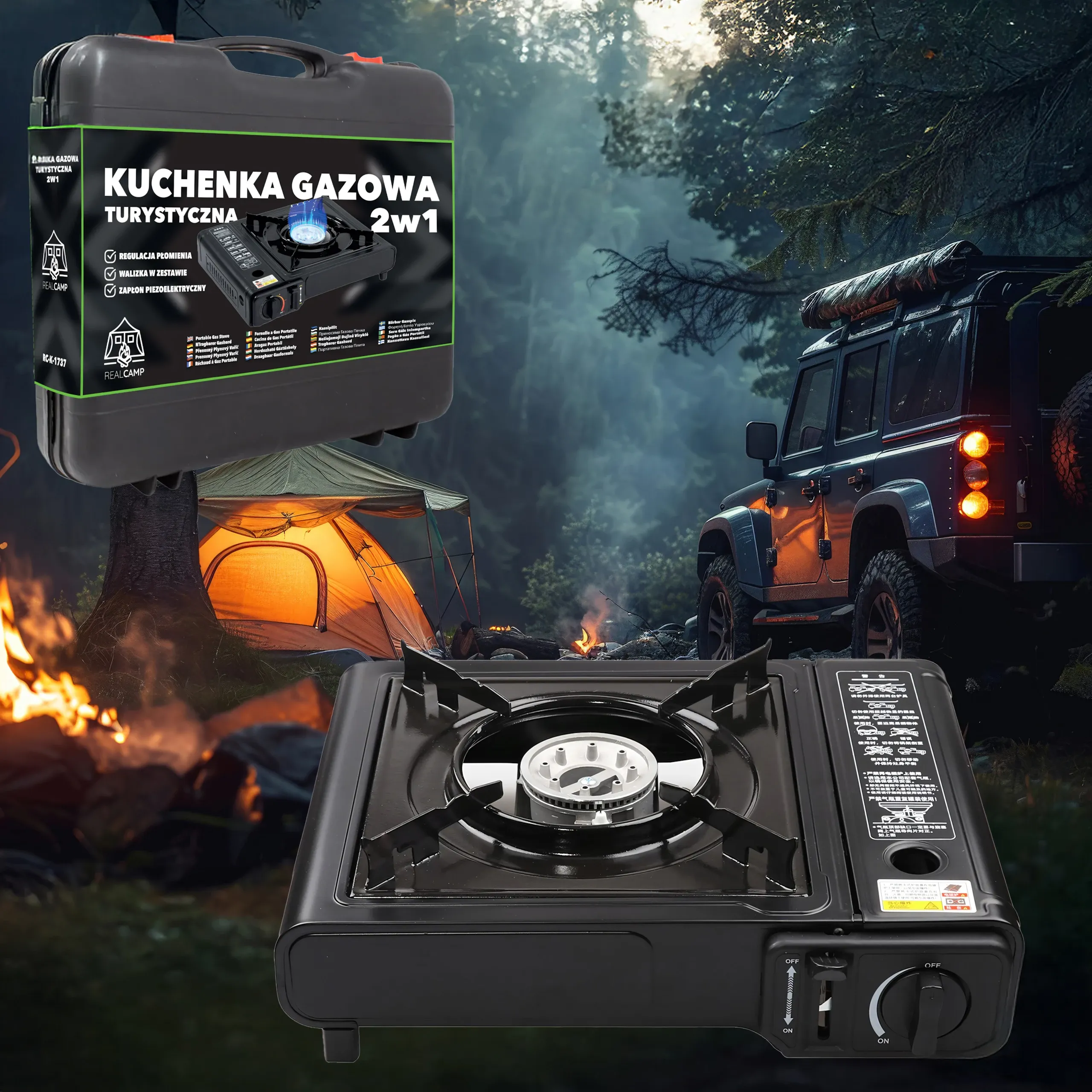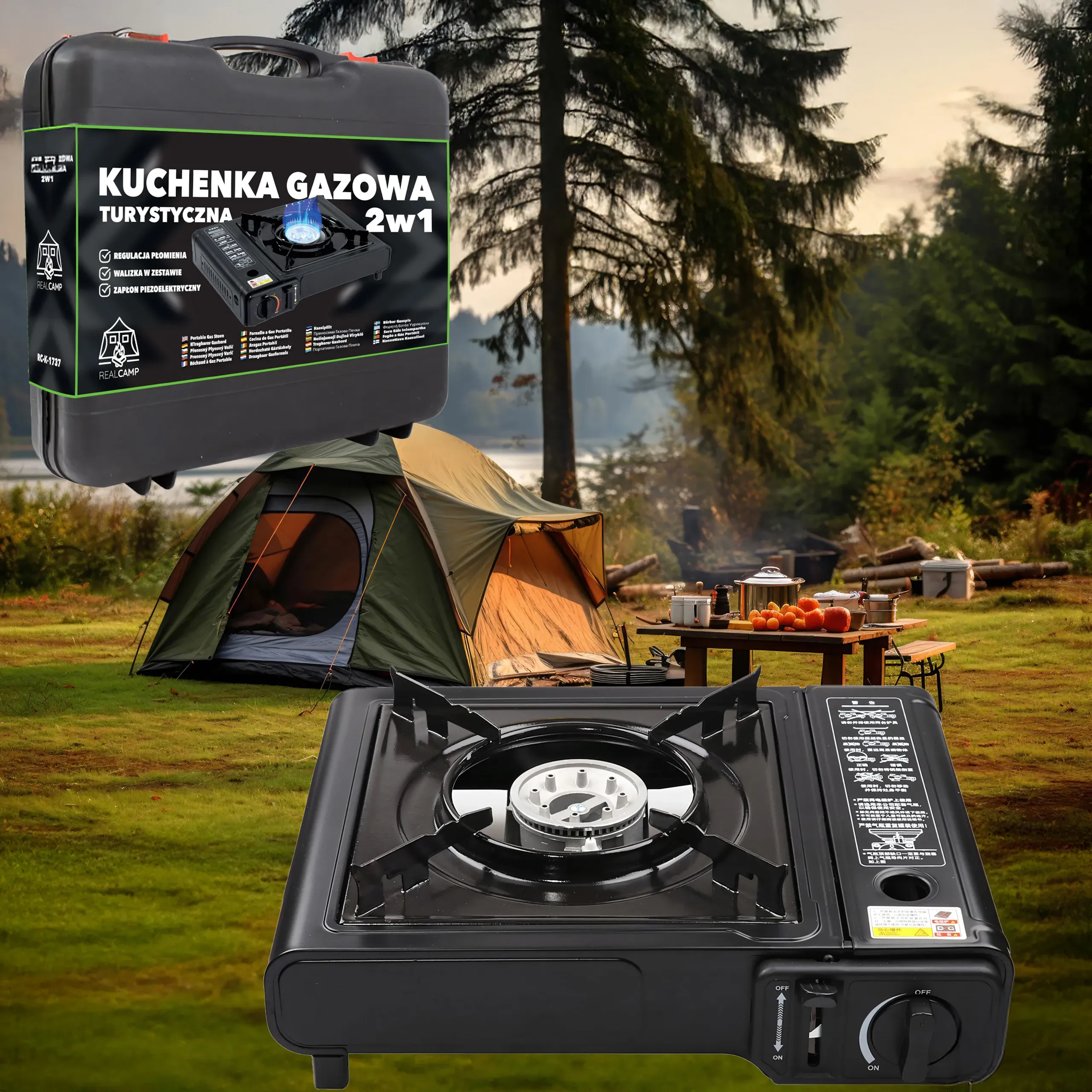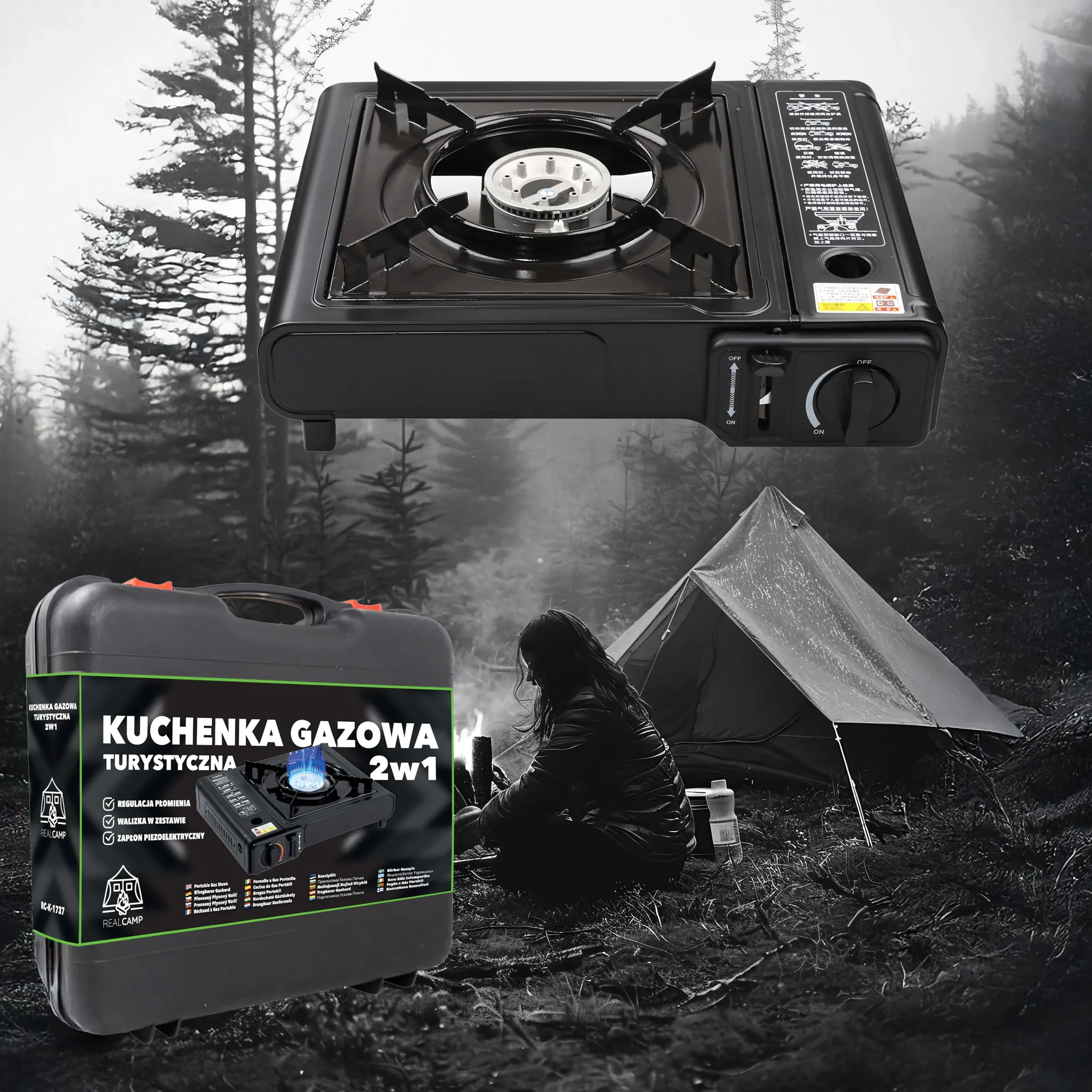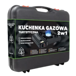 - 2w1 – kartusz lub butla gazowa – Możliwość zasilania kartuszem gazowym lub butlą, co zwiększa uniwersalność użytkowania.