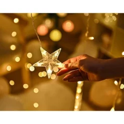 Zasłony świetlne gwiazdki są bardzo starannie wykonane. Rozproszone naprzemiennie w równych odstępach gwiazdy LED o dwóch wielkościach tworzą pełną wdzięku kompozycję. Miedziane druciki, utrzymujące gwiazdki, zostały wzmocnione przez spiralną budowę i posiadają wzdłuż długości pojedyncze lampeczki. Druciki wykonane zostały z miedzi, co dodaje zestawowi dodatkowego uroku. Rozpiętość kurtyny pozwoli na swobodne dopasowanie i zawieszenie jej do karnisza, dzięki czemu gwiazdki, wkomponowane np. w mleczną, lekko prześwitującą firanę, będą stanowić efektowne dopełnienie wystroju okien. A to dopiero jedno z wielu zastosowań, jakie posiadają prezentowane lampki gwiazdki.