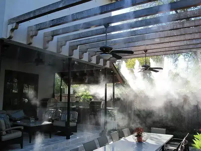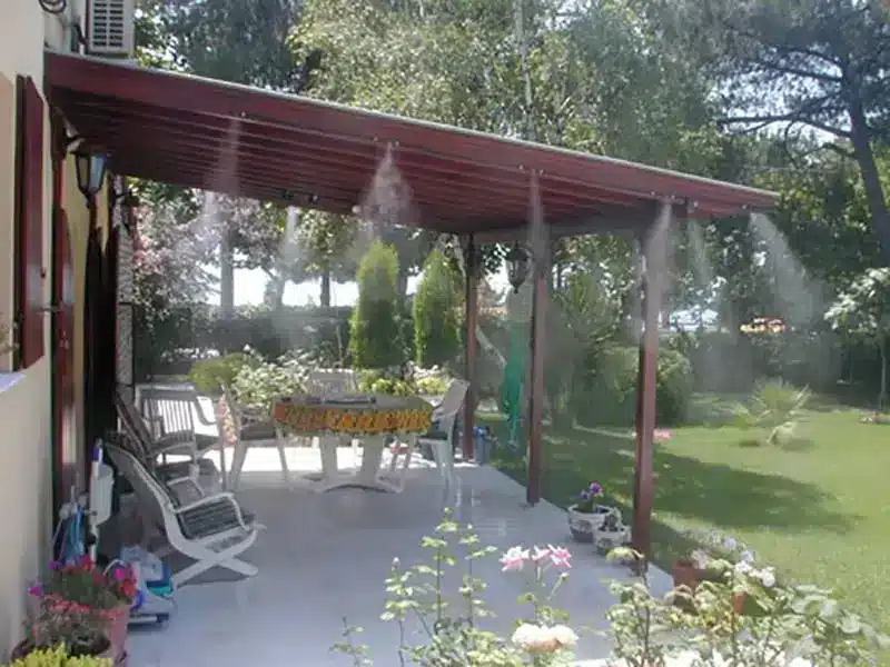 Po podłączeniu do wody z dysz będzie rozpylana delikatna orzeźwiająca mgiełka. Pozwala ona schłodzić otoczenie o około 10°C. Dodatkowo odstrasza różnego rodzaju insekty i owady. Woda z dysz będzie się powoli sączyć, co nie doprowadzi do za dużego zużycia wody.