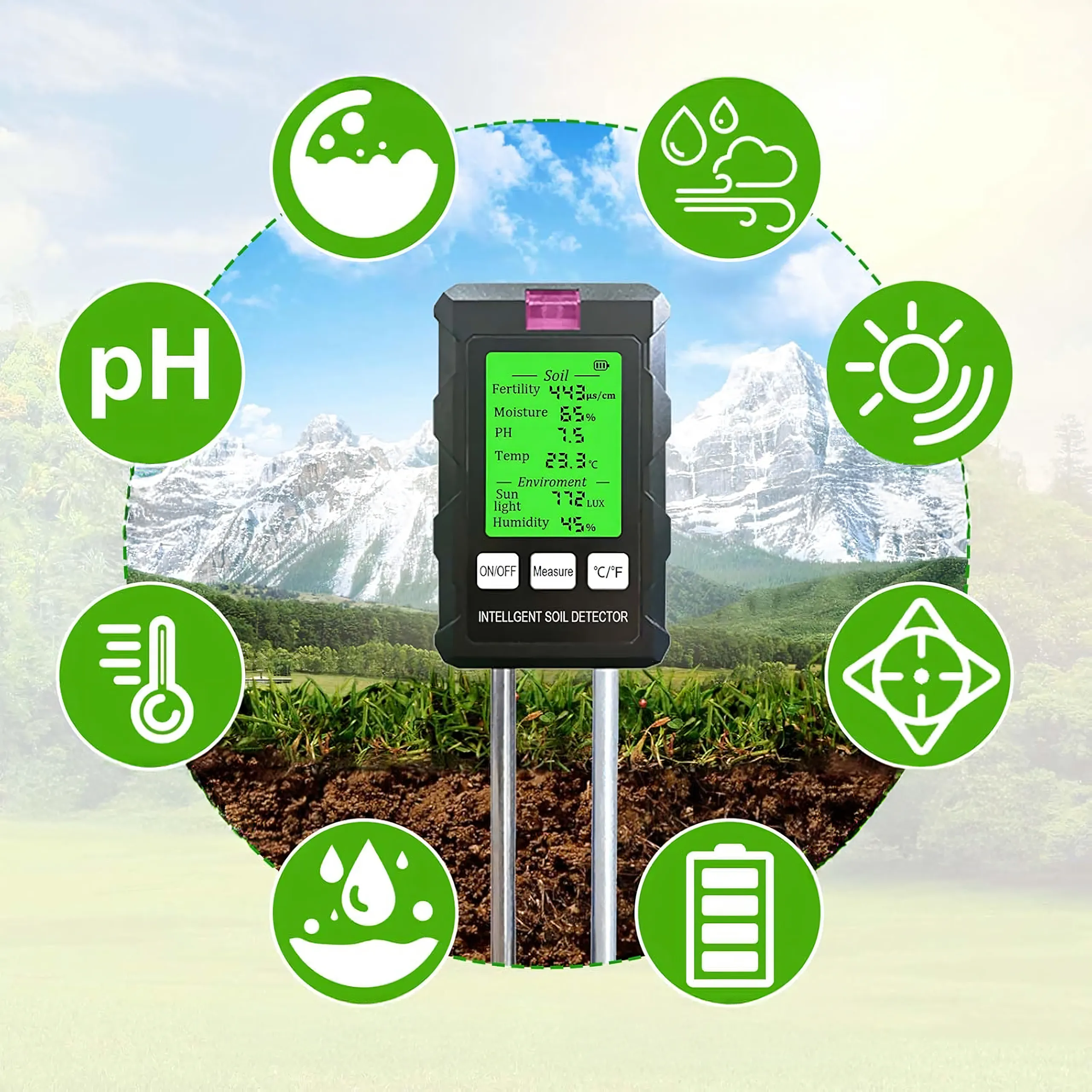 - 6 funkcji w jednym urządzeniu – pełna kontrola gleby i otoczenia.