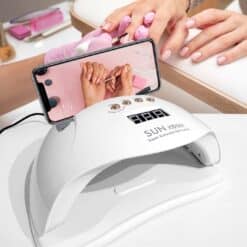 Odkryj profesjonalną lampę UV do paznokci – niezastąpione narzędzie dla każdej kobiety, która pragnie zadbać o swoje stylizacje w domowym zaciszu! Dzięki intuicyjnej obsłudze, nawet osoby stawiające pierwsze kroki w świecie manicure będą mogły z łatwością korzystać z tego innowacyjnego urządzenia. Nasza lampa UV nie tylko gwarantuje doskonałe rezultaty, ale również zachwyca eleganckim designem, który doskonale wkomponuje się w ekskluzywne wnętrza salonów kosmetycznych. Jej lekka konstrukcja sprawia, że przechowywanie i przenoszenie lampy staje się wyjątkowo komfortowe, a stylowy srebrny uchwyt dodatkowo ułatwia transport. Z tym urządzeniem możesz rozpocząć swoją przygodę ze stylizacją paznokci. Na górze lampy znajduje się miejsce na telefon, na którym np. możesz oglądać poradniki w czasie tworzenia paznokci.
