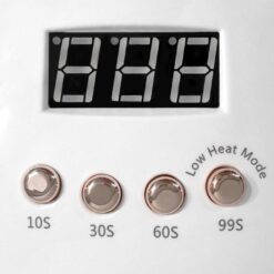 Na górnej części lampy znajduje się jasny wyświetlacz LED, który precyzyjnie pokazuje czas naświetlania, umożliwiając pełną kontrolę nad procesem utwardzania. Nasze urządzenie oferuje aż cztery różne czasy naświetlania: 10 s, 30 s, 60 s oraz 99 s, co pozwala na idealne dopasowanie do różnych produktów od renomowanych marek. Z myślą o Twojej wygodzie, lampę można łatwo wyłączyć, wystarczy ponownie kliknąć na wybrany przycisk. Dzięki 45 punktom świetlnym, nasze urządzenie zapewnia doskonałe rezultaty, skutecznie utwardzając żel i hybrydę. Światło dociera nawet do trudno dostępnych miejsc, takich jak kciuk, co sprawia, że każdy manicure będzie perfekcyjny.