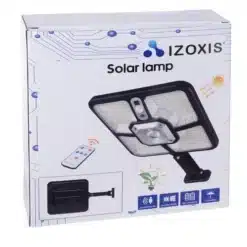 Pilot + 4 tryby pracy – wygodne sterowanie lampą odbywa się przy pomocy pilota. Posiada on przyciski Off i On oraz 3 tryby przełączania. ON- Włącz – OFF – Wyłącz MODE 1 – Tryb 1: Po wykryciu ruchu, lampa świeci 100% mocy maksymalnej przez 30 sekund. MODE 2 – Tryb 2: Po wykryciu ruchu, lampa świeci 30% mocy maksymalnej przez 30 sekund. MODE 3 – Tryb 3: Po wykryciu ruchu, lampa świeci 50% mocy maksymalnej przez 30 sekund. SOS – przycisk SOS wyłącza czujnik ruchu i czujnik zmierzchu , lampa świeci na stałe do rozładowania akumulatora na ok 50- 70% mocy.