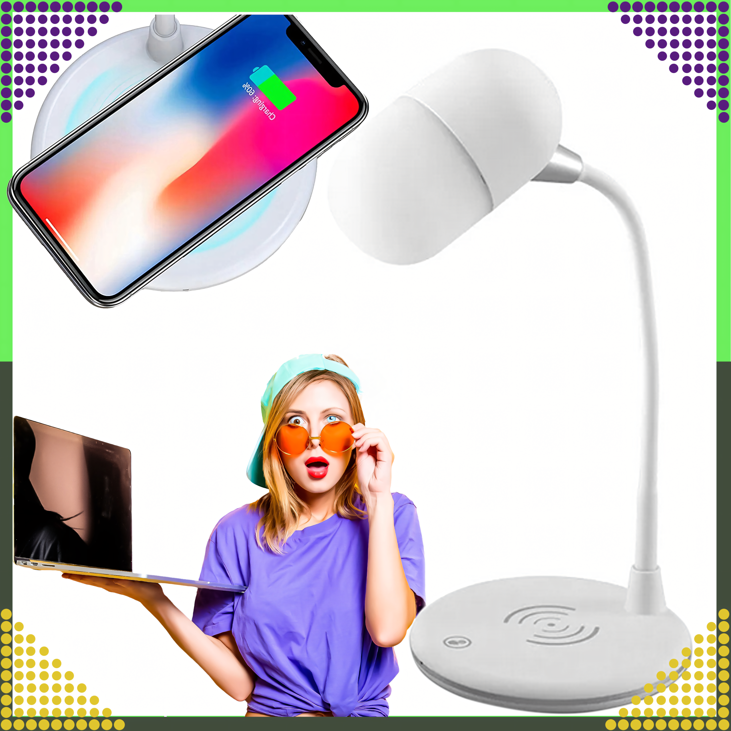 Lampka Biurkowa Nocna Ładowarka Indukcyjna Głośnik Bluetooth Szkolna Nauka