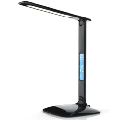 Na nóżce lampki został wbudowany wyświetlacz LCD, na którym możemy sprawdzić aktualną temperaturę pomieszczenia, datę i godzinę oraz ustawić budzik. Dyskretne niebieskie podświetlenie pozwoli nawet w nocy dostrzec godzinę, bez zapalania lampki. Temperatura wyświetlana może być w stopniach Celsjusza lub Fahrenheitach, godzinę można ustawić w formacie 12h lub 24h. Jest możliwość całkowitego wyłączenia podświetlenia, aby nie przeszkadzało w trakcie snu.