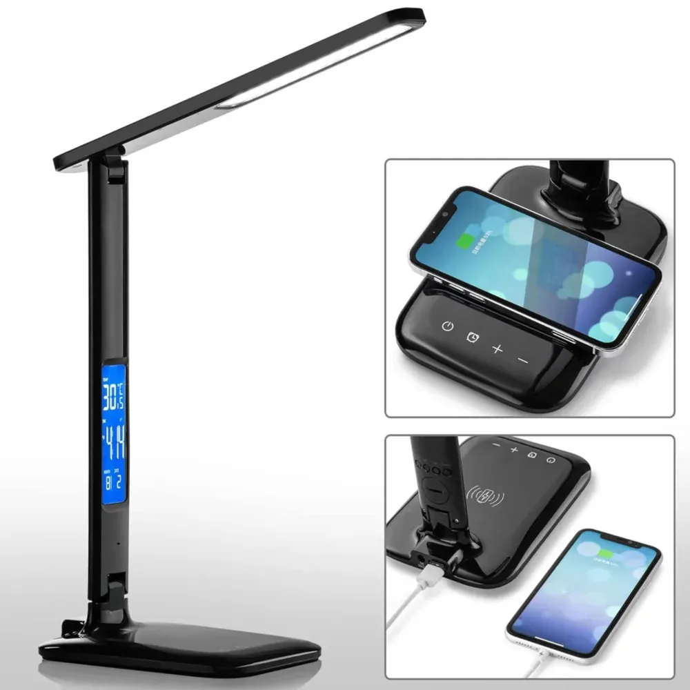 Lampka biurkowa LED z wyświetlaczem oraz ładowarką bezprzewodową