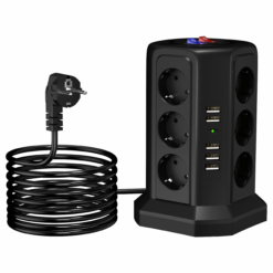 Listwa Zasilająca Stojąca Ochronna Odgromowa 12 Gniazd + 5 Portów Usb Reset