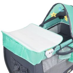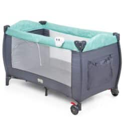 Łóżeczko turystyczne składane z bogatym zestawem dodatków oraz regulacją wysokości