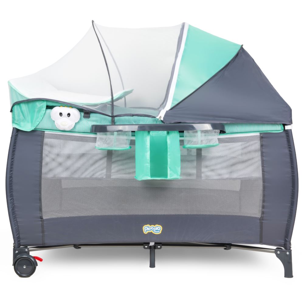 Łóżeczko turystyczne Piccolo to idealne miejsce na odpoczynek naszej pociechy, zarówno w domu jak i podczas wyjazdów! Szerokie wyposażenie daje wiele możliwości, dzięki czemu staje się praktyczne oraz niezależne w każdych warunkach. Jest to wielofunkcyjny mebel, który pełni rolę nie tylko wygodnego łóżka ale również kojca do zabawy czy miejscem do przewijania. Lekka, składana konstrukcja oraz torba transportowa z uchwytem, ułatwią przenoszenie łóżeczka.
