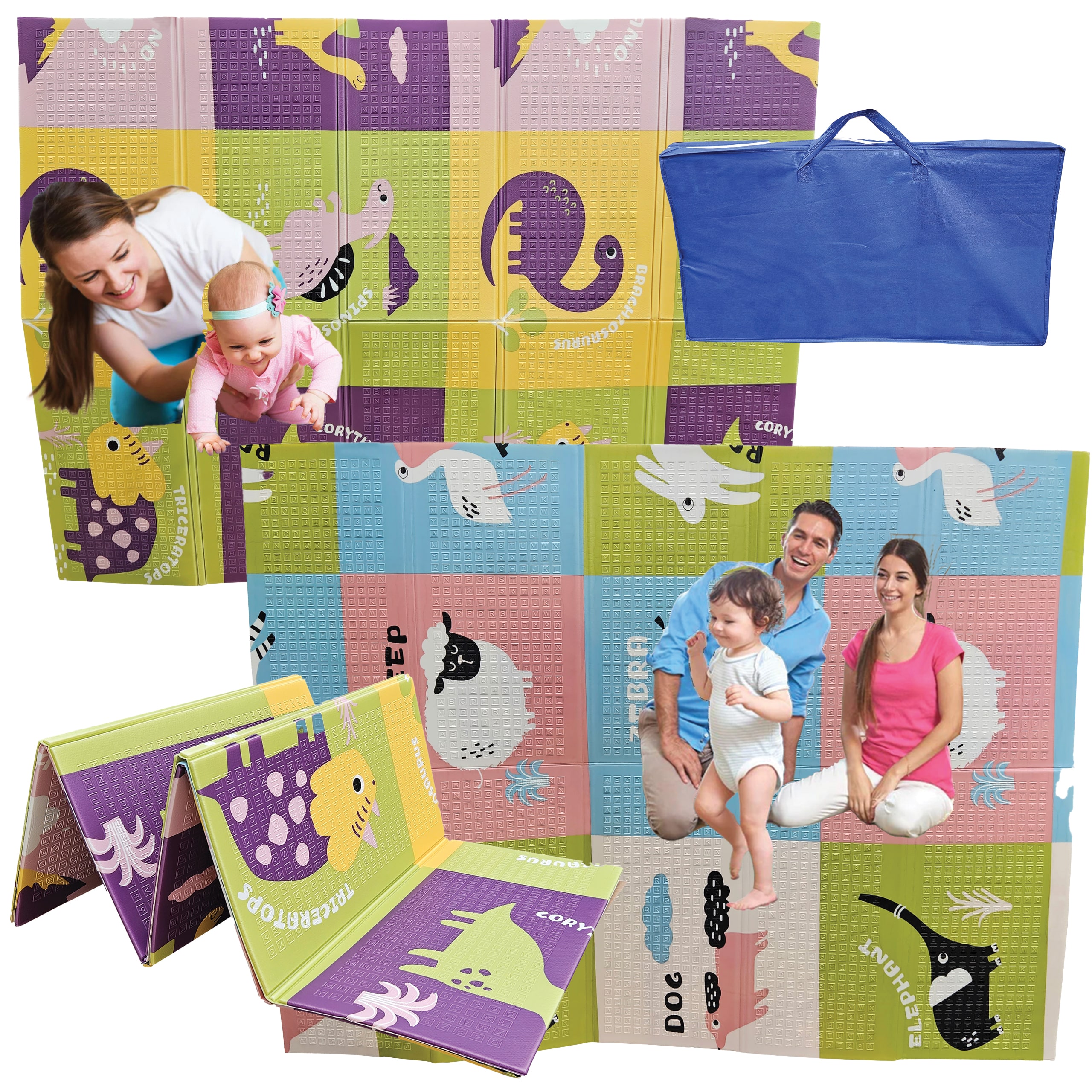 Dwustronna Mata Piankowa XXL Składana Edukacyjna Dinozaury + Zwierzęta 200x150cm