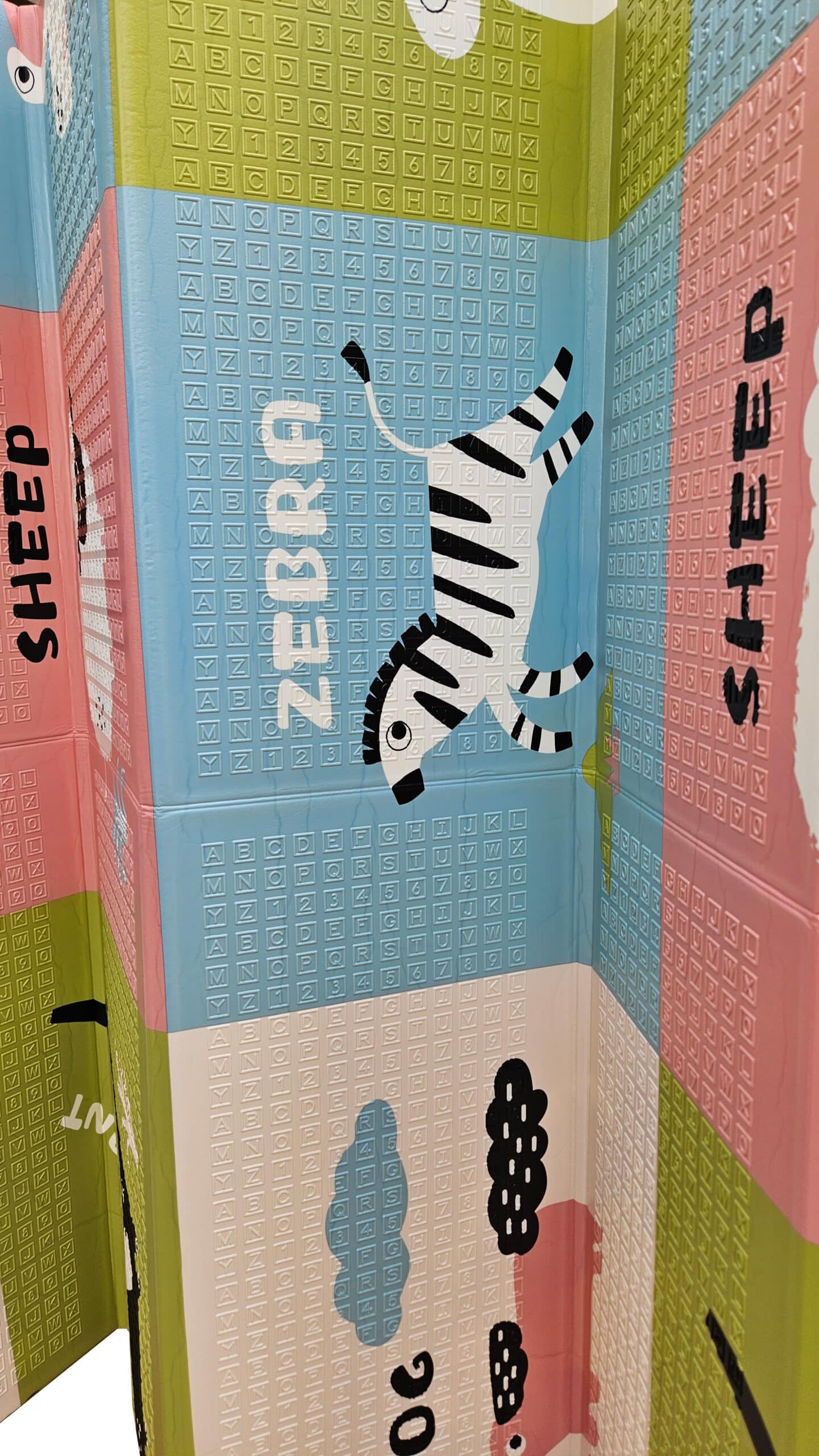 Powierzchnia antypoślizgowa: Mata posiada specjalną strukturę antypoślizgową na swojej powierzchni, zapobiegając ślizganiu się dziecka oraz przesuwaniu się maty po podłodze.