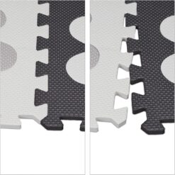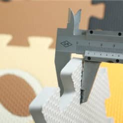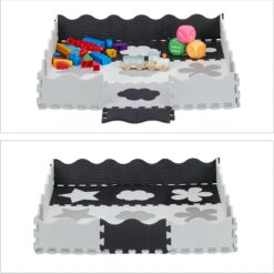 Komplet składa się z 25 elementów. Brzegi posiadają specjalne “ząbki”, dzięki którym można je łączyć w dowolny sposób. Grubość maty ( 1 cm ) sprawia, że stanowi ona dobrą izolację przed chłodem, dzięki temu możesz rozłożyć ją na chłodniejszych powierzchniach np. płytkach.
