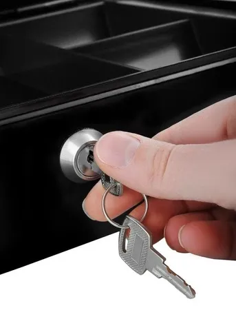- Zamykana – Zastosowanie mocnego zamka patentowego zapewnia dużą ochronę przed dostępem do środka kasetki niepowołanych osób, każda kasetka posiada 2 indywidualne kluczyki pasujące tylko do niej.