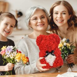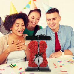 Miś został wykonany ze sztucznych, małych różyczek, dzięki czemu nie trzeba się martwić o jego trwałość. Jest idealną alternatywą dla klasycznego bukietu kwiatów, ponieważ zostanie z twoimi bliskimi na bardzo długi czas. Dodatkowo, ozdobne pudełko uchroni go przed ewentualnym zniszczeniem, zabrudzeniem czy kurzem. Bliska Ci osoba jest alergikiem? Bez obaw, możesz jej wręczyć tego misia, gdyż został wykonany z bezpiecznego tworzywa PE, nie uczuli jak kwiaty.
