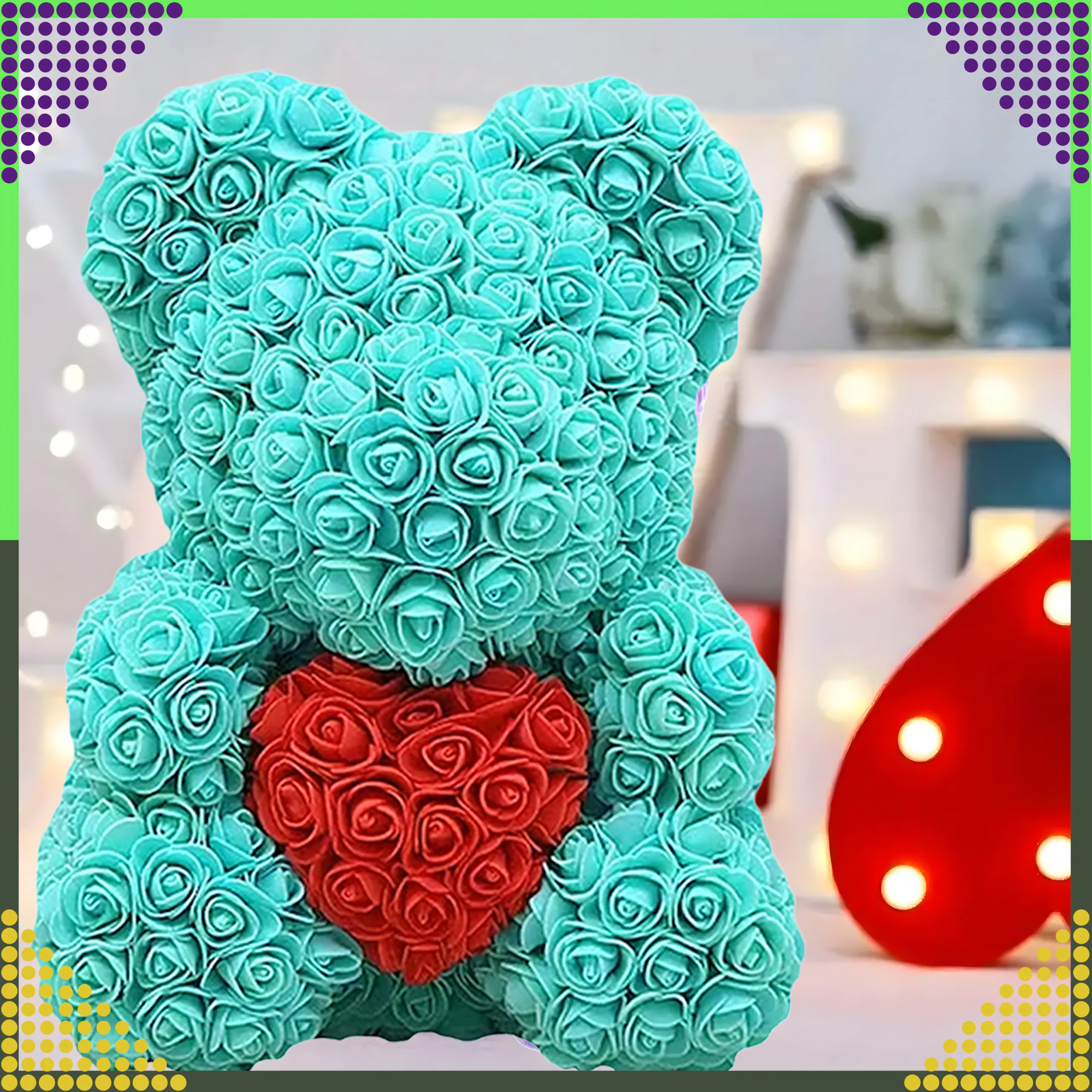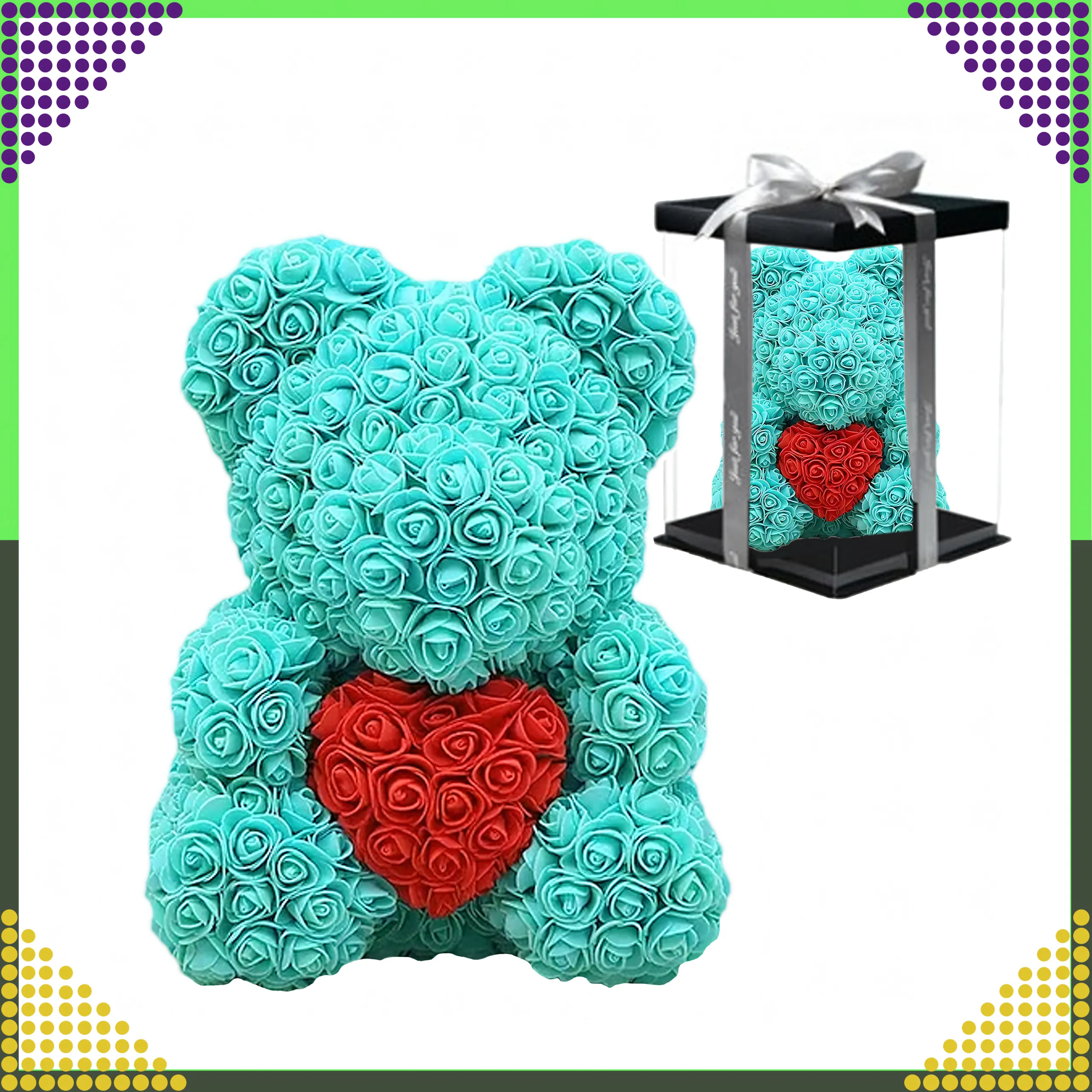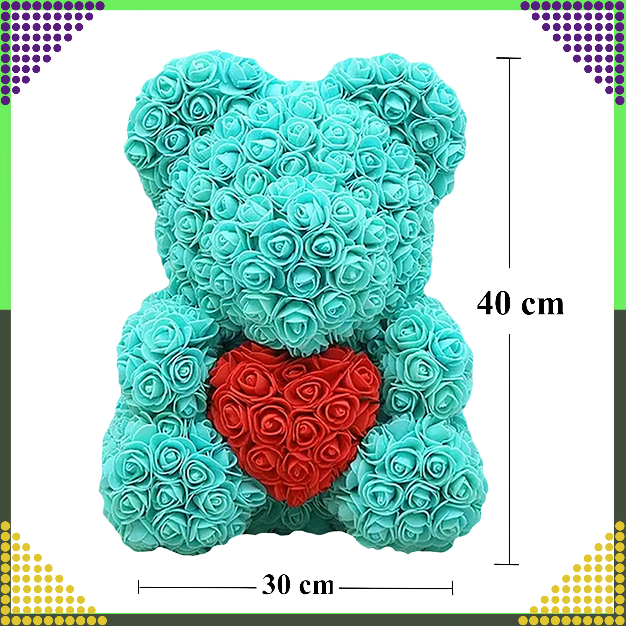 Miś został wykonany z wysokiej jakości piankowych róż PE, które do złudzenia przypominają prawdziwe kwiaty. Każda róża jest precyzyjnie ułożona, dzięki czemu całość prezentuje się bardzo estetycznie i luksusowo. Produkt zaprojektowany jest z myślą o osobach, które szukają oryginalnego prezentu zamiast klasycznego bukietu kwiatów.