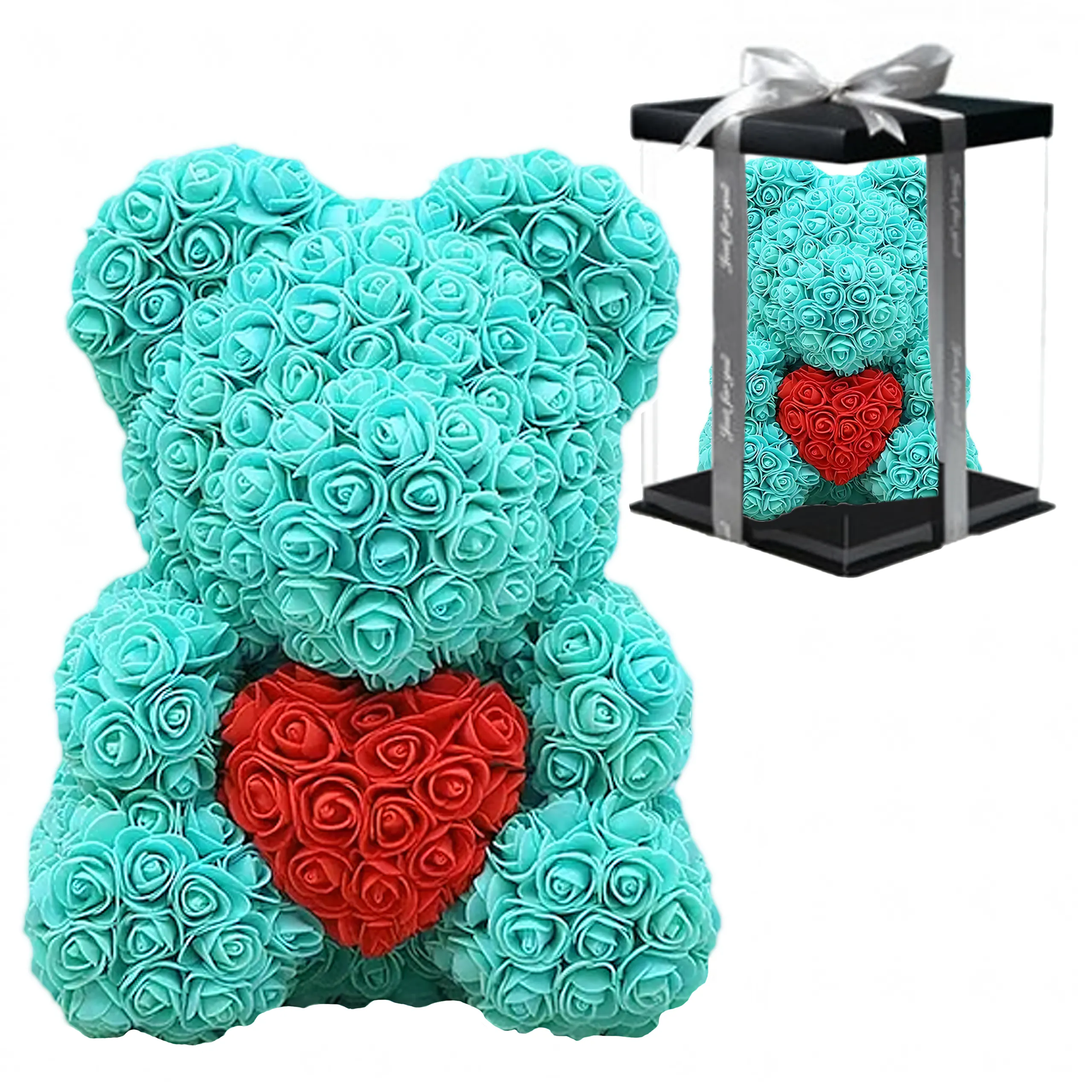 Miś z róż 40 cm – Luksusowy prezent na walentynki, dzień kobiet i urodziny