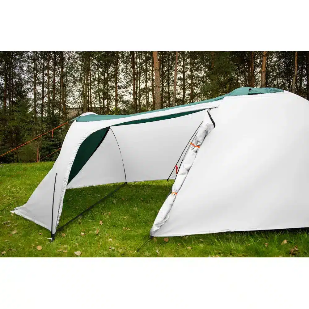 - Materiał i konstrukcja namiotu zapewnia odporność na poziomie 1000mm słupa wody