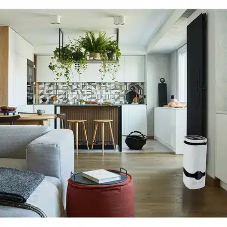 Fajnie, że jest dość mały, cichy, ładny design i działa! Pracował cały dzień i noc, wyłączył się gdy skończyła się woda. Nie nagrzewa się przy długiej pracy. Monstery i alokazje zadowolone. Na pow. 40m2 udało się przy kwiatach osiągnąć wilgotność w nocy na poziomie 68% w dzień utrzymuje się w okolicach 63%. Starczy 🙂