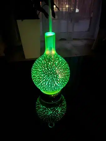 Przepiękny efekt lustrzanej lampki 3D – lustrzany klosz przecudownie prezentuję się po zapaleniu lampki. Efekt rozproszonego światła rozchodzi się po całym nawilżaczu co zachwyci każdego.