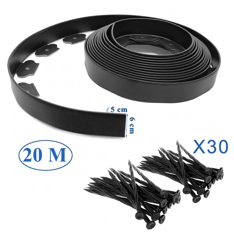 Obrzeże trawnikowe ogrodowe elastyczne czarne 6cm 20m + 60 Kotew