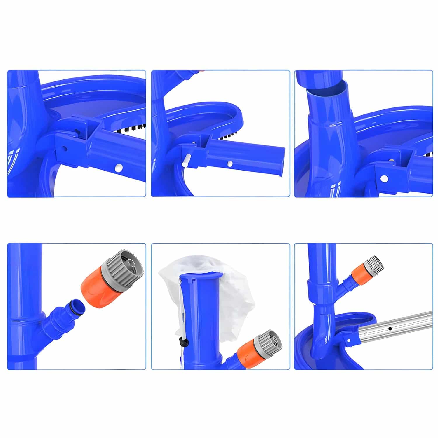 Podłącz wąż ogrodowy, zamontuj kij teleskopowy (nie jest w zestawie), zanurz i gotowe!