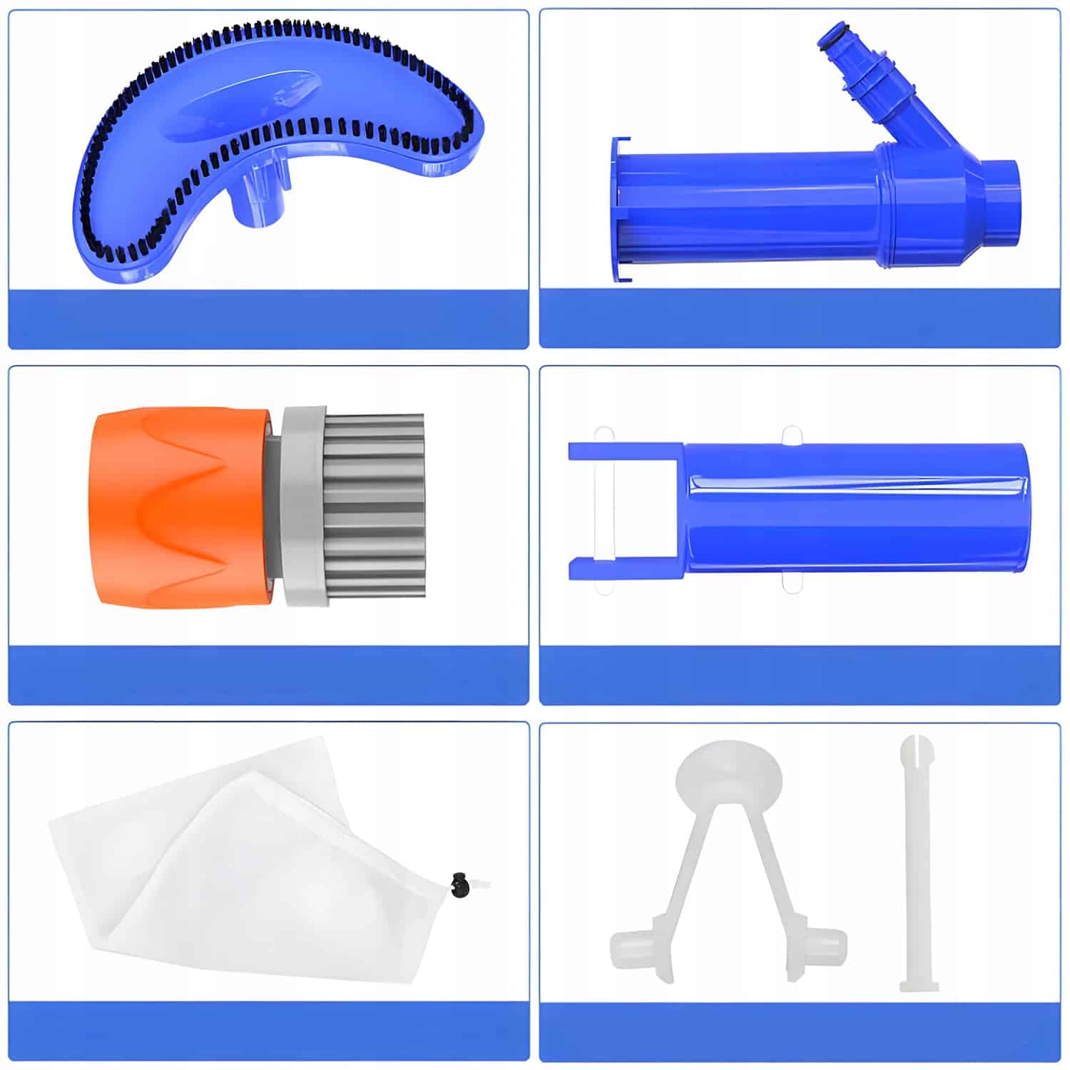 Strumień wody tworzy efekt ssania, który skutecznie zbiera zanieczyszczenia do siatkowego worka. Zero chemii, zero hałasu!