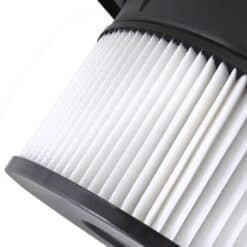 - Podwójny system filtracji – filtr HEPA oraz filtr materiałowy zapobiegają wydostawaniu się pyłów na zewnątrz urządzenia i dodatkowo chroni silnik.