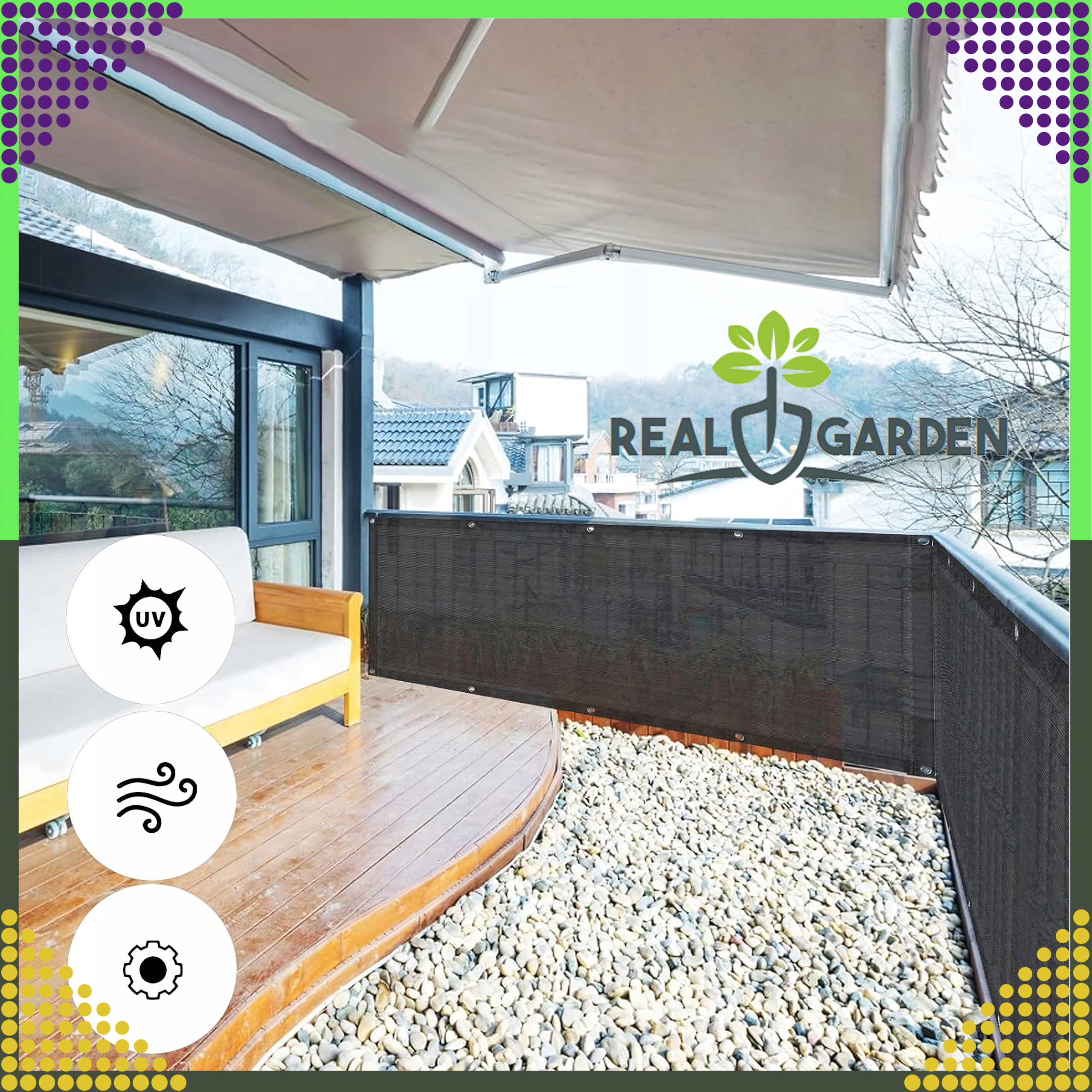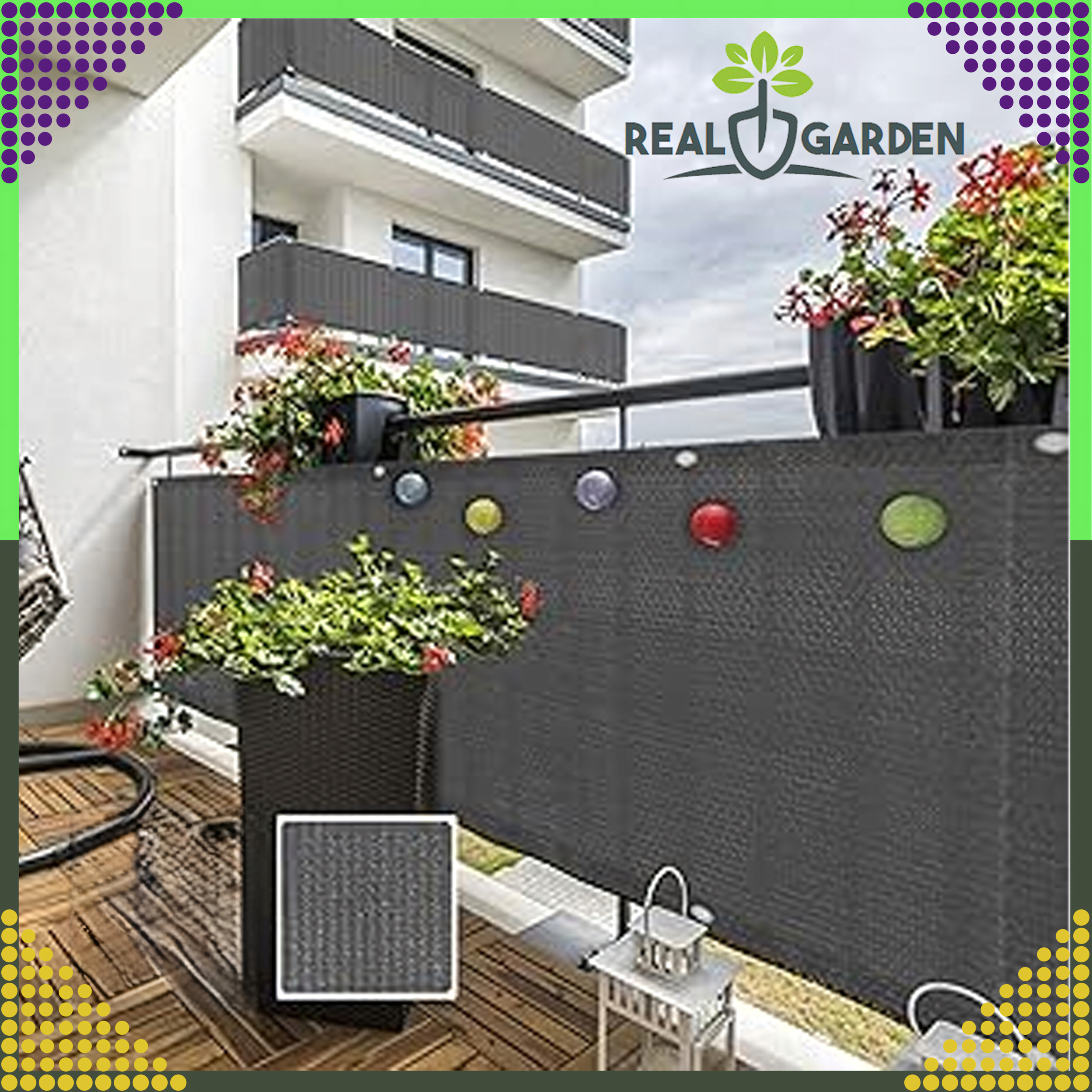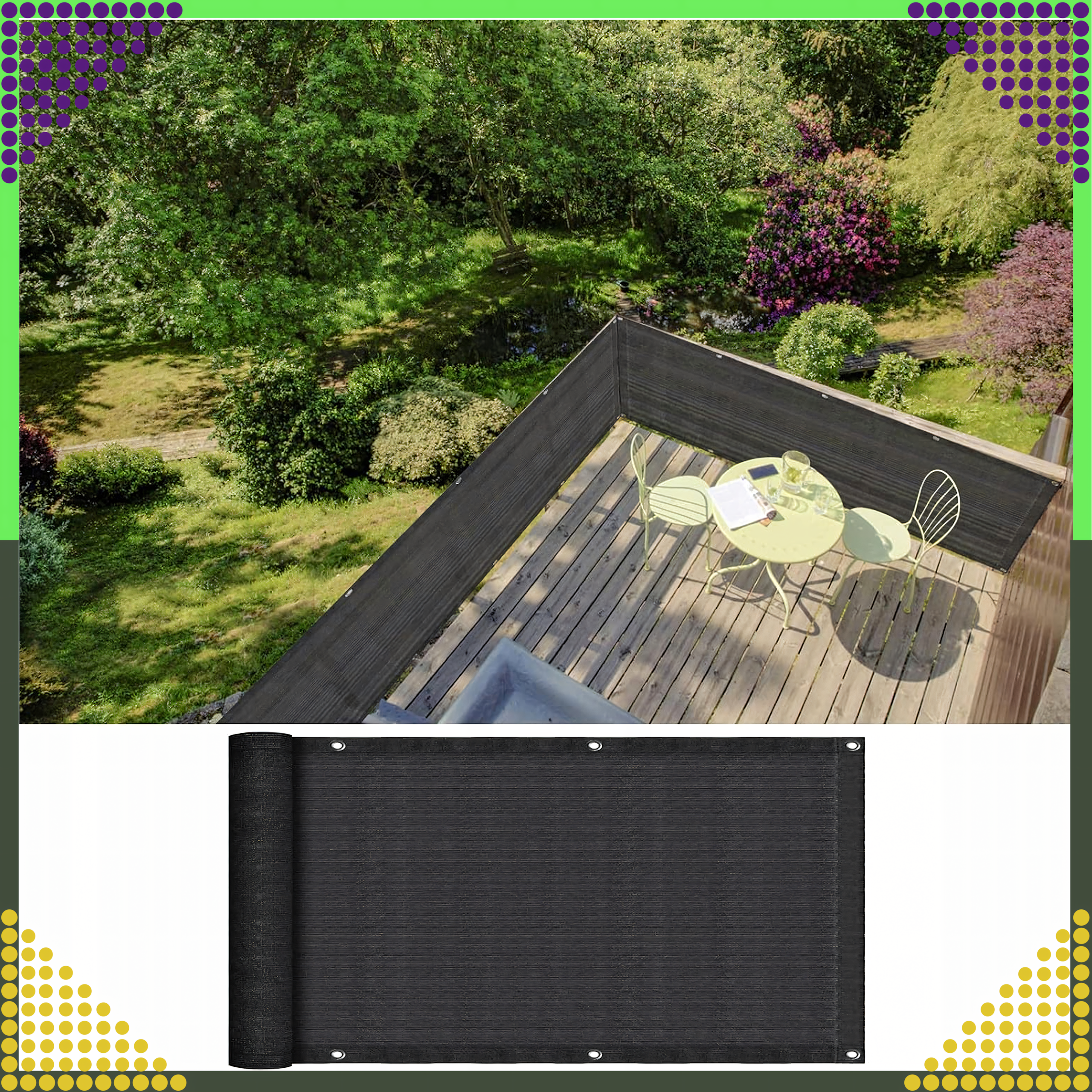 Siatka maskująca do zastosowania na balkon, taras lub w przydomowej altanie.