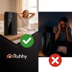 ✅ RUHHY pracuje niezwykle cicho – zaledwie 25–30 dB, dzięki czemu możesz korzystać z niego nawet w nocy, w sypialni czy pokoju dziecka. Urządzenie działa skutecznie, nie zakłócając odpoczynku, pracy ani codziennych zajęć.