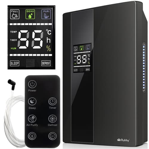 Zadbaj o czyste, suche i świeże powietrze w swoim domu dzięki urządzeniu 2w1. RUHHY to połączenie osuszacza i oczyszczacza powietrza – skutecznie usuwa nadmiar wilgoci, a jednocześnie pomaga odświeżyć atmosferę w pomieszczeniu, eliminując zaduch i poprawiając jakość oddychania. Cichy, energooszczędny, z dotykowym panelem, pilotem i funkcją inteligentnego ustawienia wilgotności – idealny do łazienki, kuchni czy sypialni. Działa automatycznie, dokładnie wtedy, gdy trzeba.