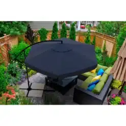 Odpowiednia ochrona i zacienione miejsce to gwarancja udanego posiłku na zewnątrz. Poszycie parasola umieszczone na bocznym wysięgniku stworzy przyjemne i bardzo duże miejsce z ograniczoną ilością promieni słonecznych. Dzięki mechanizmowi zginania możesz dowolnie ustawić poszycie pod kątem świecącego słońca, a boczny wysięgnik pozwoli na wykorzystanie zacienionej przestrzeni w 100%.