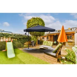 Nadchodzą dni pełne słońca, jeśli szukasz schronienia przed nadmiernym działaniem promieniowania słonecznego ten produkt sprawdzi się idealnie. Parasole na wysięgniku idealnie spisują się jako zacienienie nawet nad bardzo rozbudowanymi zestawami mebli ogrodowych, na tarasach, balkonach lub po prostu w kąciku na działce. Wyposażony jest w wywietrznik pozwalający uciec gorącemu powietrzu. To jednak nie koniec ich zalet: możliwość zmiany kąta nachylenia czaszy sprawia, że wędrujące po nieboskłonie słońce nie jest już problemem – bez większego wysiłku możesz cieszyć się komfortowym cieniem przez cały dzień. Świetnie się sprawdzi na każdą pogodę jak i niepogodę. Dzięki parasolowi stworzysz miejsce do relaksu, odpoczynku i wygody. W sam raz na wypicie porannej kawy czy też na poobiednią drzemkę. Rozsiądź się na wygodnym leżaku i ciesz się chwilą tylko dla siebie.