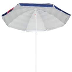 Realistyczne nadruki na czaszy parasola z pewnością wyróżnią jego użytkownika na tle innych plażowiczów i przyciągną wzrok niejednej osoby. Wzór w biało-niebieskie poziome pasy od wielu sezonów króluje na plaży. Jest to typowo marynistyczny deseń, szczególnie popularny na plażach śródziemnomorskich, motyw ten został zaczerpnięty z flagi Grecji, jednej z najpopularniejszych destynacji wakacyjnych wypadów. Ten ponadczasowy wzór to symbol urlopu i wypoczynku w eleganckim, klasycznym wydaniu. Żywe kolory parasola sprawiają, że zdjęcia wykonane na jego tle będą idealne do publikacji w mediach społecznościowych.
