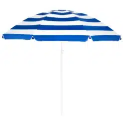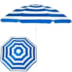 Realistyczne nadruki na czaszy parasola z pewnością wyróżnią jego użytkownika na tle innych plażowiczów i przyciągną wzrok niejednej osoby. Wzór w biało-niebieskie poziome pasy od wielu sezonów króluje na plaży. Jest to typowo marynistyczny deseń, szczególnie popularny na plażach śródziemnomorskich, motyw ten został zaczerpnięty z flagi Grecji, jednej z najpopularniejszych destynacji wakacyjnych wypadów. Ten ponadczasowy wzór to symbol urlopu i wypoczynku w eleganckim, klasycznym wydaniu. Żywe kolory parasola sprawiają, że zdjęcia wykonane na jego tle będą idealne do publikacji w mediach społecznościowych.