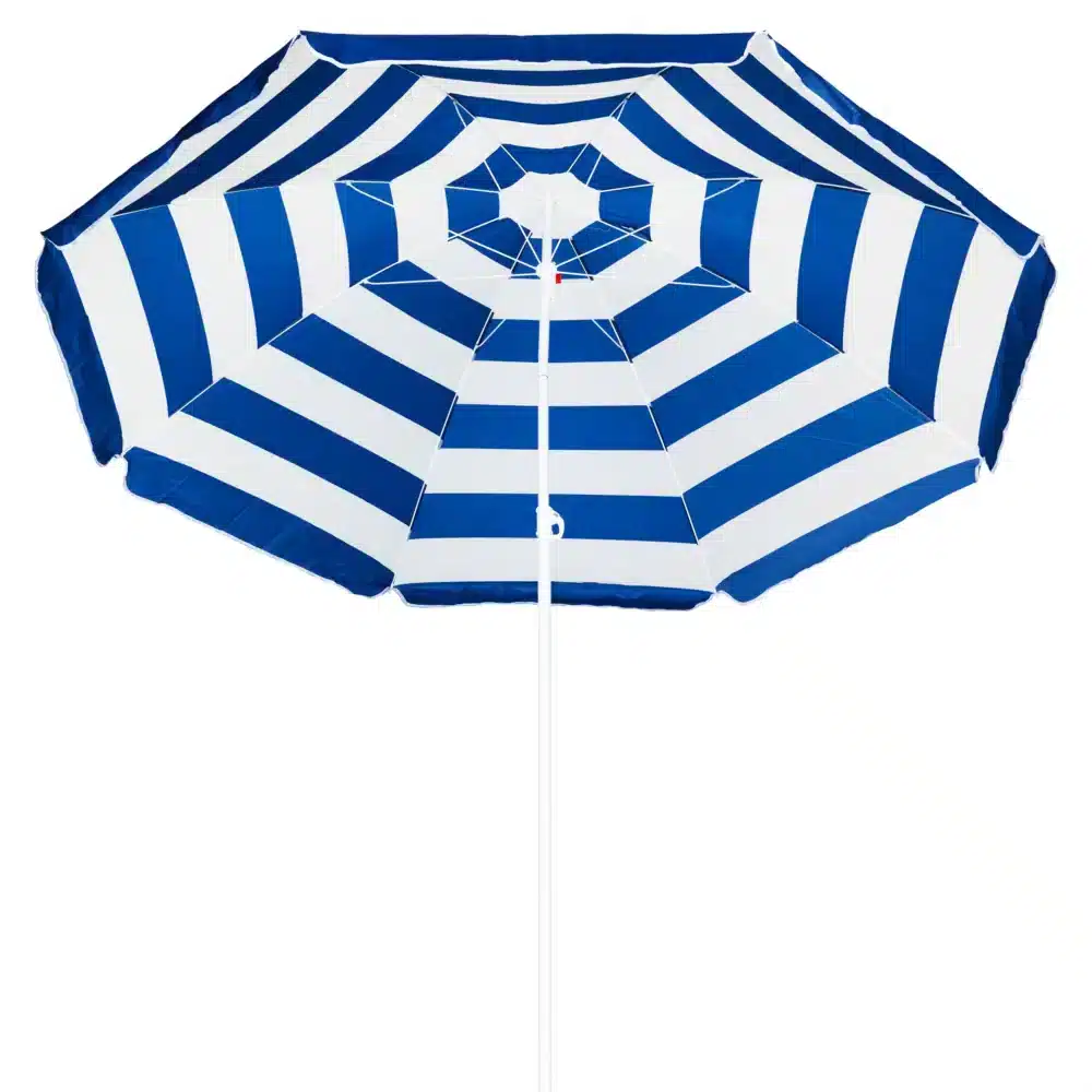 Realistyczne nadruki na czaszy parasola z pewnością wyróżnią jego użytkownika na tle innych plażowiczów i przyciągną wzrok niejednej osoby. Wzór w biało-niebieskie poziome pasy od wielu sezonów króluje na plaży. Jest to typowo marynistyczny deseń, szczególnie popularny na plażach śródziemnomorskich, motyw ten został zaczerpnięty z flagi Grecji, jednej z najpopularniejszych destynacji wakacyjnych wypadów. Ten ponadczasowy wzór to symbol urlopu i wypoczynku w eleganckim, klasycznym wydaniu. Żywe kolory parasola sprawiają, że zdjęcia wykonane na jego tle będą idealne do publikacji w mediach społecznościowych.