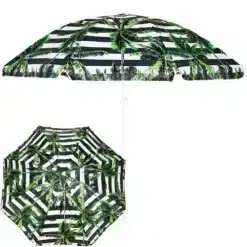 Realistyczne nadruki na czaszy parasola z pewnością wyróżnią jego użytkownika na tle innych plażowiczów i przyciągną wzrok niejednej osoby. Wzór w biało-niebieskie poziome pasy od wielu sezonów króluje na plaży. Jest to typowo marynistyczny deseń, szczególnie popularny na plażach śródziemnomorskich, motyw ten został zaczerpnięty z flagi Grecji, jednej z najpopularniejszych destynacji wakacyjnych wypadów. Ten ponadczasowy wzór to symbol urlopu i wypoczynku w eleganckim, klasycznym wydaniu. Żywe kolory parasola sprawiają, że zdjęcia wykonane na jego tle będą idealne do publikacji w mediach społecznościowych.
