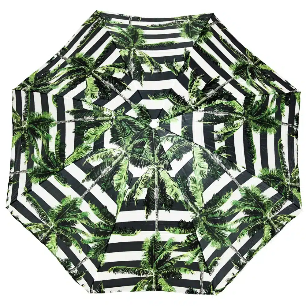 Realistyczne nadruki na czaszy parasola z pewnością wyróżnią jego użytkownika na tle innych plażowiczów i przyciągną wzrok niejednej osoby. Wzór w biało-niebieskie poziome pasy od wielu sezonów króluje na plaży. Jest to typowo marynistyczny deseń, szczególnie popularny na plażach śródziemnomorskich, motyw ten został zaczerpnięty z flagi Grecji, jednej z najpopularniejszych destynacji wakacyjnych wypadów. Ten ponadczasowy wzór to symbol urlopu i wypoczynku w eleganckim, klasycznym wydaniu. Żywe kolory parasola sprawiają, że zdjęcia wykonane na jego tle będą idealne do publikacji w mediach społecznościowych.