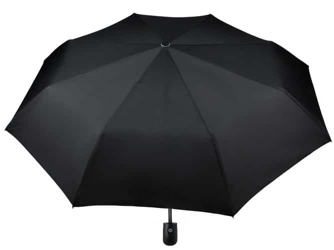 Praktyczny parasol automatyczny. Jeden przycisk służy do rozkładania i składania kapelusza parasola. Dzięki niewielkim rozmiarom po złożeniu mieści się w torebce czy nawet w większej kieszeni. Końcówki ramion parasola wykonane są z włókna węglowego, dzięki czemu posiada dużą odporność na podmuchy wiatru. Parasol zapinany jest na rzep i posiada elegancki pokrowiec ochronny.