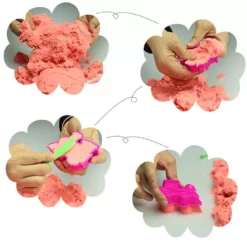 Dzięki zastosowaniu najnowszych technologii, kinectic sand formuje się w dowolne formy bez użycia wody, zachowując przy tym odczucia typowe dla prawdziwego piasku na plaży. Nie brudzi rąk i ubrań, co stanowi niezwykle ważną cechę, jeśli chodzi o nasze pociechy. Nawet po szalonej zabawie, dzięki swojej niezwykłej formule bardzo łatwo go sprzątnąć.