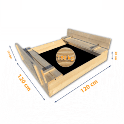 Nasze drewniane piaskownice ogrodowe wyposażone są w zamykane wieko, które po otwarciu pełni rolę wygodnych ławeczek do siedzenia. Piaskownice wykonane są z naturalnego sosnowego drewna, starannie wypolerowane, aby zapewnić bezpieczeństwo dziecka poprzez eliminację ostrych krawędzi.