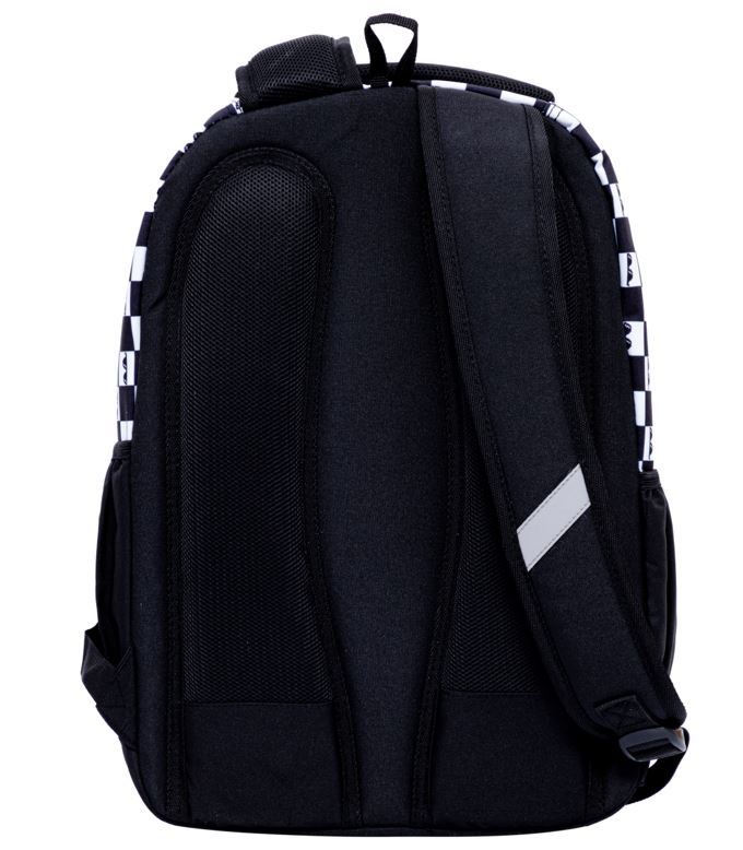 Plecak posiada boczne kieszenie na bidon lub butelkę z wodą, co zachęca dziecko do regularnego nawadniania się. Dodatkowe przegródki pozwalają na uporządkowanie długopisów, kredek i innych drobiazgów. Wygodny uchwyt na górze ułatwia zawieszenie plecaka w szkole lub przenoszenie go w ręku.