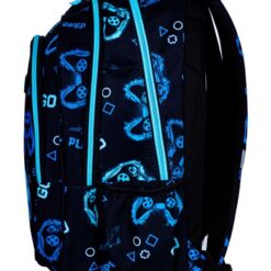 Plecak posiada boczne kieszenie na bidon lub butelkę z wodą, co zachęca dziecko do regularnego nawadniania się. Dodatkowe przegródki pozwalają na uporządkowanie długopisów, kredek i innych drobiazgów. Wygodny uchwyt na górze ułatwia zawieszenie plecaka w szkole lub przenoszenie go w ręku.